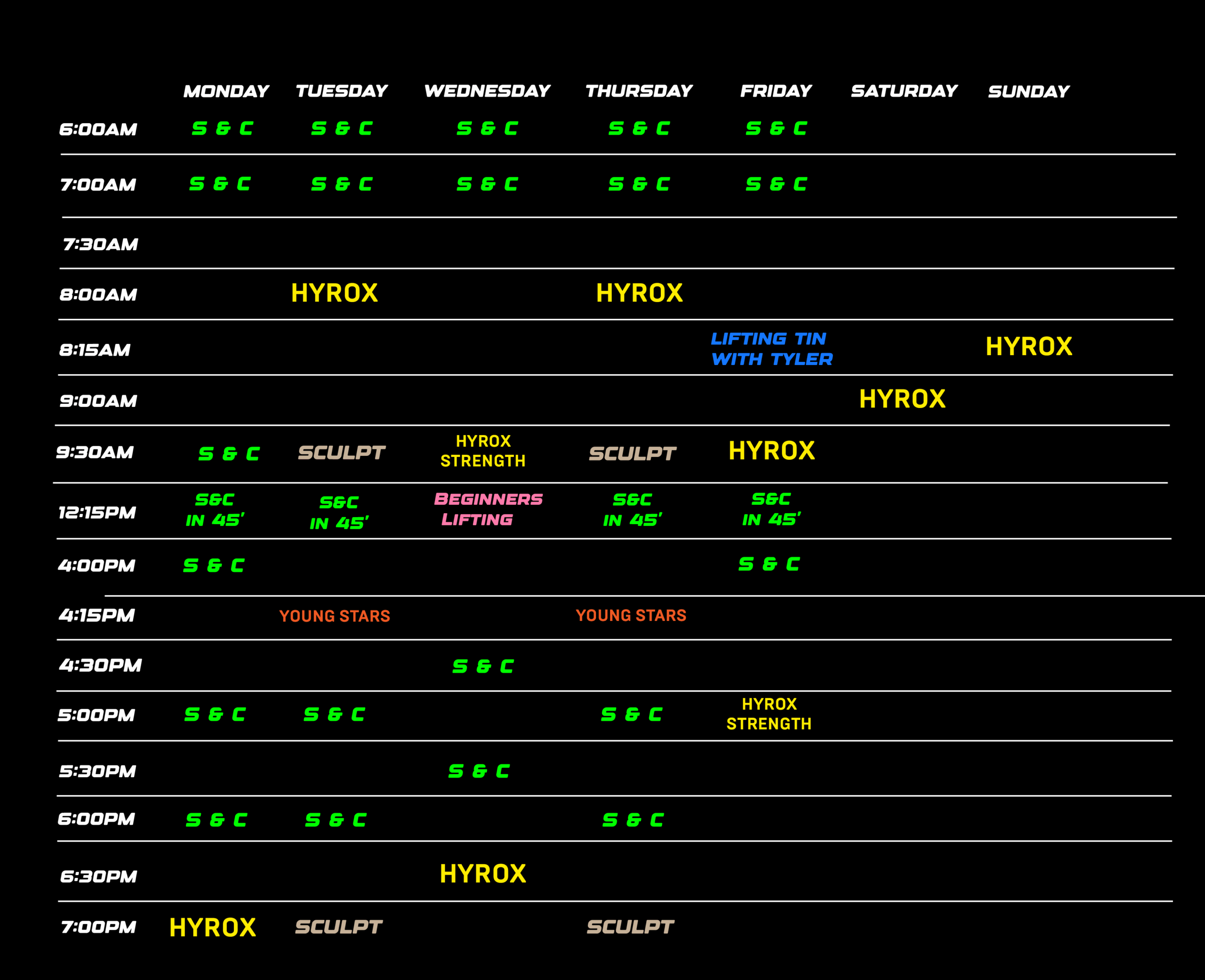 Our new class to get your young ones in to fitness! A mix of aerobic and gymnastics work will give them an initial step in to this fitness world with official HYROX Young Stars training.